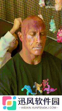 其9岁女儿茉莉与6岁女儿蒂安娜为其进行“创意装扮”。女孩儿们把blingbling的化妆品涂满强森全头,强森一脸生无可恋但宠溺的放任女儿化妆